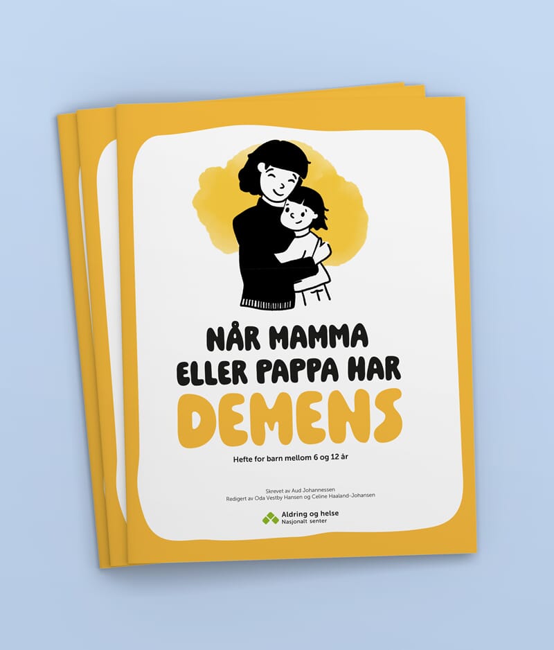 Når mamma eller pappa har demens – Hefte for barn 6–12 år er utviklet for at barn som pårørende skal få informasjon om hva demens er, og hvordan hjernen fungerer. Det står om hvordan det er å ha en mamma eller pappa med demens og hvordan det er å være barn som pårørende. Det er også et eget kapittel om tilbud til barn som pårørende. Gjennom heftet er det noen oppgaver som kan hjelpe barna med å forstå mer om sin situasjon og være til hjelp for å føle dem gode nok som de er. Barn som er over 12 år eller har andre i familien med demens kan også ha nytte av å lese heftet.